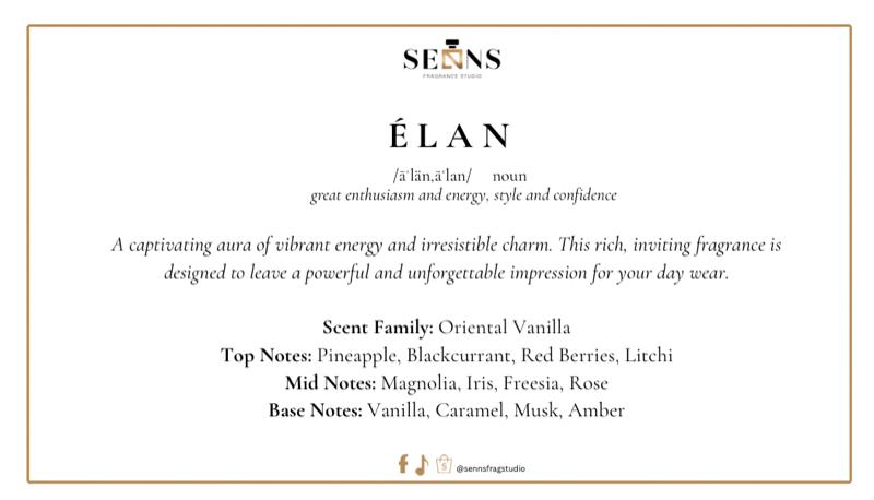Experience Élan, a luxury perfume oil crafted for style, energy, and confidence. This long-lasting extrait de parfum oil blends vibrant fruits, soft florals, and warm vanilla, leaving a fragrance that clings close to the skin for hours.